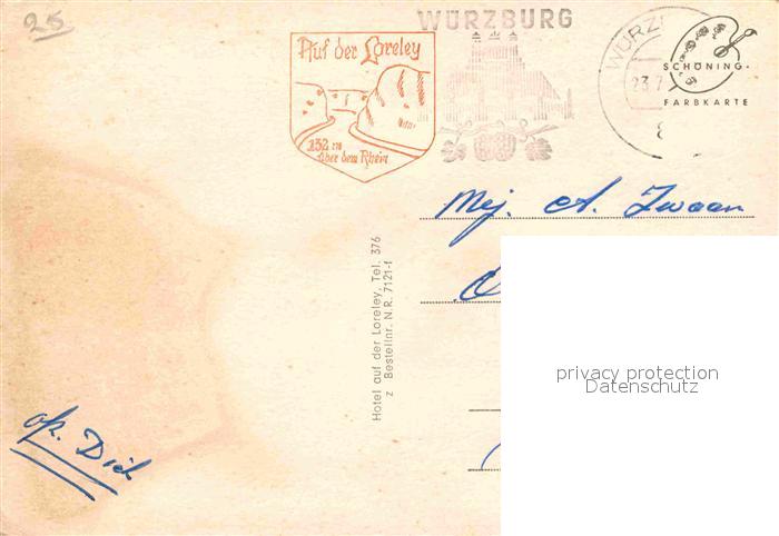 72862660 alte Postkarte Loreley Lorelei Hotel Rheinpartie Schloss Felsen postalisch gelaufen Erhaltung siehe scans [WerneD78] KatCode: 11110007141121