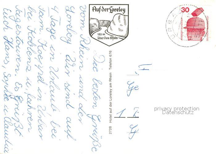 73009283 alte Postkarte Loreley Lorelei Liedtext Loreleyfelsen mit Jungfrau postalisch gelaufen Erhaltung siehe scans [WerneD78] KatCode: 11110007141121
