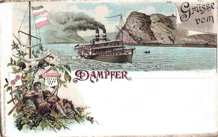 Loreley Lorelei Sankt Goarshausen Rheinland-Pfalz Loreley Felsen Dampfer Litho postalisch nicht gelaufen Erhaltung siehe scans [FriedD77] Frie Katcode 11110007141121