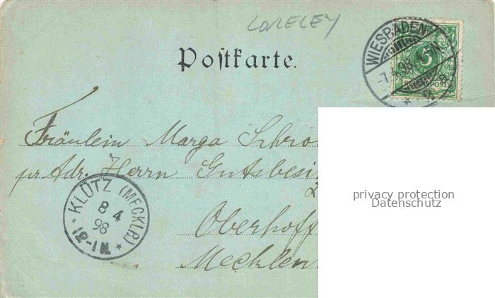 74126992 alte Postkarte Loreley Lorelei Sankt Goarshausen Rheinland-Pfalz Uferpartie am Rhein Blick zum Loreley Felsen postalisch gelaufen Erhaltung siehe scans [FriedD77] KatCode: 11110007141121
