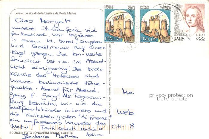 old postcard Loreto Ancona Le absidi della basilica da Porta Marina postalisch gelaufen Erhaltung siehe scans