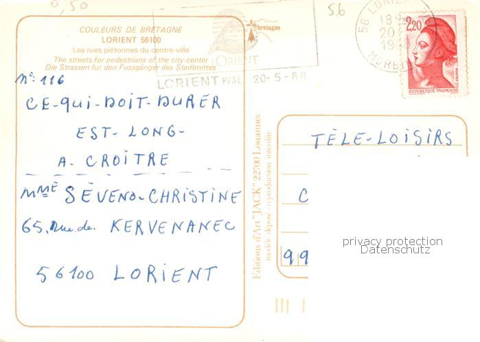 13786767 Lorient 56 Morbihan Rues piétonnes du centre ville postalisch gelaufen Erhaltung siehe scans [FriedD77] carte postale Frie Katcode 11170056156121