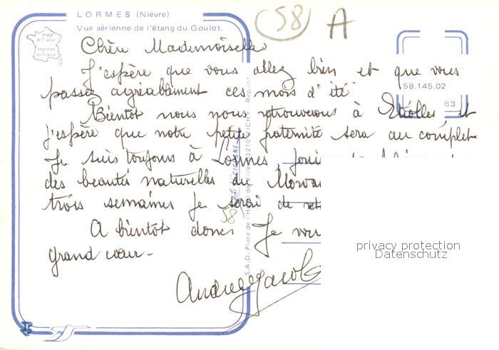 13218154 Lormes Fliegeraufnahme Etang du Goulot postalisch nicht gelaufen Erhaltung siehe scans [LiesaD40] KatCode: 11170058258145
