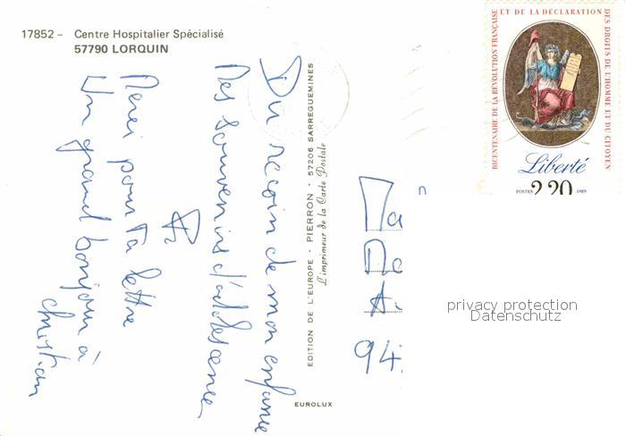 12797932 carte postale Lorquin Krankenhaeuser postalisch gelaufen Erhaltung siehe scans [KathaD81] KatCode: 11170057557414