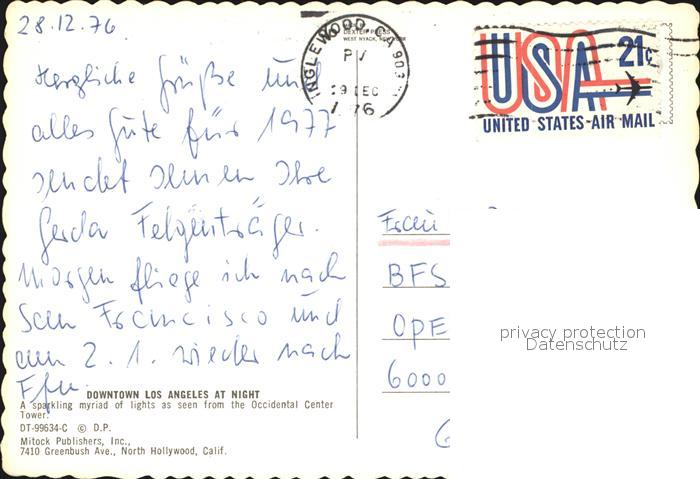 72582390 old postcard Los Angeles California at night postalisch gelaufen Erhaltung siehe scans [WerneD78] KatCode: 14140050000000