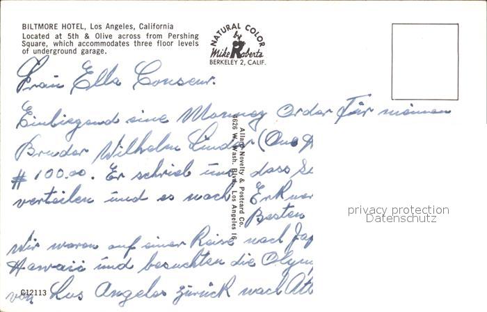 72922259 Los Angeles California Biltmore Hotel postalisch nicht gelaufen Erhaltung siehe scans [WerneD48] KatCode: 14140050000000