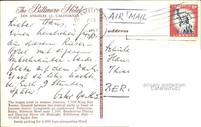 72161952 old postcard Los Angeles California Biltmore Hotel postalisch gelaufen Erhaltung siehe scans KatCode: 14140050000000