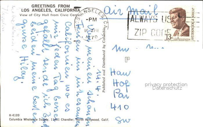 11686308 old postcard Los Angeles California Brunnen City Hall from Civic Center postalisch gelaufen Erhaltung siehe scans KatCode: 14140050000000