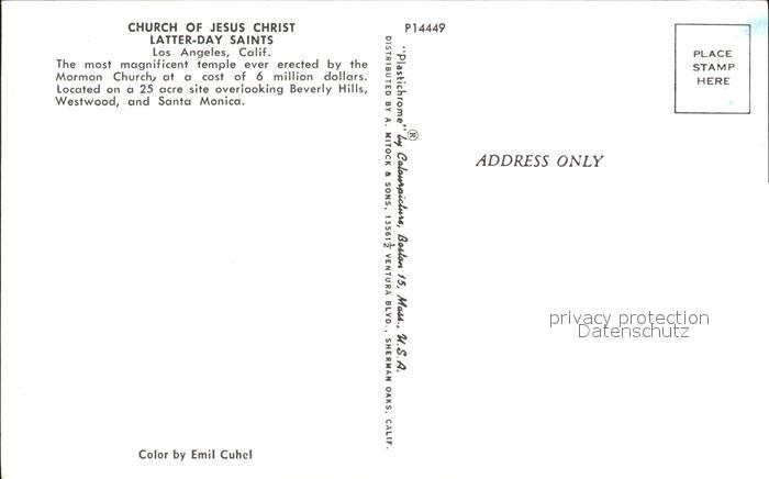 72275230 Los Angeles California Church of Jesus Christ postalisch nicht gelaufen Erhaltung siehe scans KatCode: 14140050000000