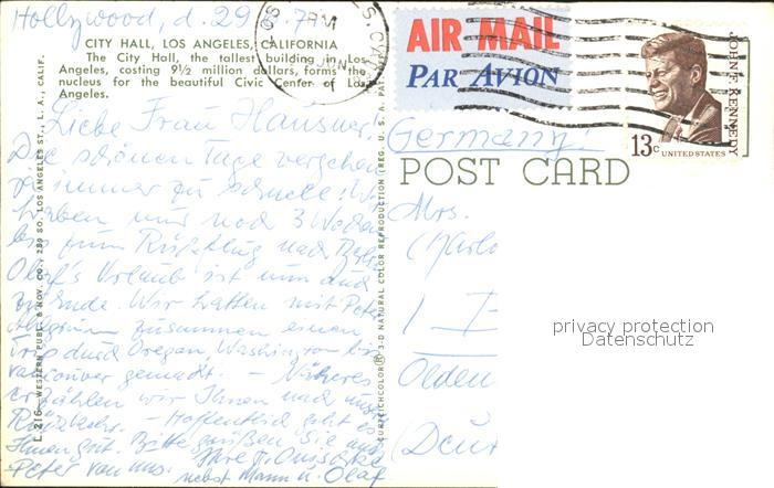 72296685 old postcard Los Angeles California City Hall postalisch gelaufen Erhaltung siehe scans KatCode: 14140050000000