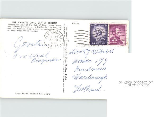 72399005 old postcard Los Angeles California Civic Center Skyline postalisch gelaufen Erhaltung siehe scans KatCode: 14140050000000