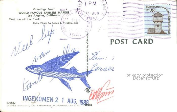 72298818 old postcard Los Angeles California Famers Markt postalisch gelaufen Erhaltung siehe scans KatCode: 14140050000000
