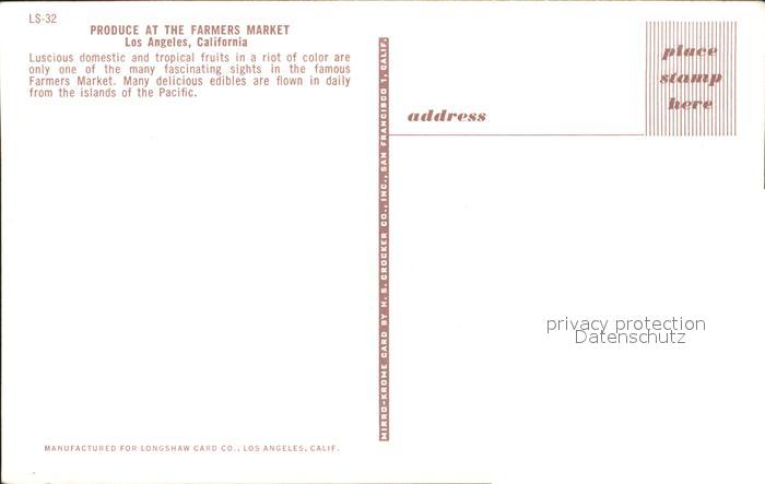 11686321 Los Angeles California Farmers Market postalisch nicht gelaufen Erhaltung siehe scans KatCode: 14140050000000