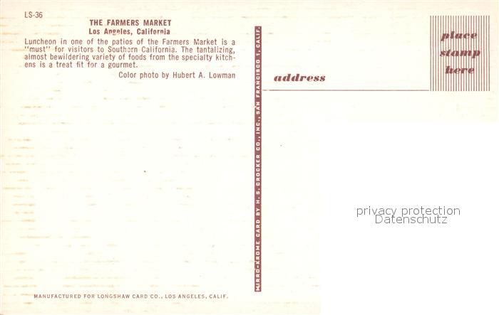 73573128 Los Angeles California Farmers Market Restaurant postalisch nicht gelaufen Erhaltung siehe scans [FriedD77] KatCode: 14140050000000
