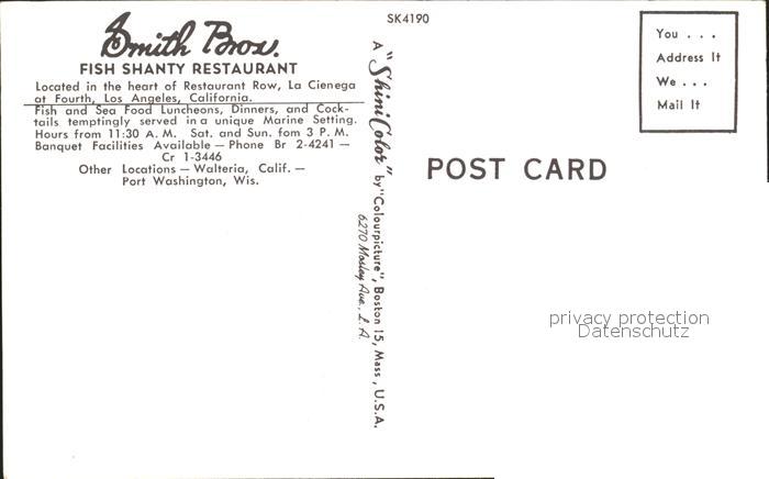 72219214 Los Angeles California Fish Shanty Restaurant postalisch nicht gelaufen Erhaltung siehe scans KatCode: 14140050000000