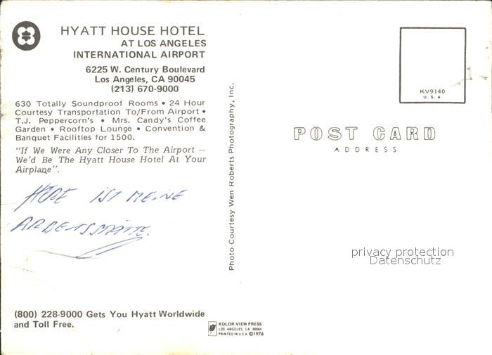 71859653 Los Angeles California Fliegeraufnahme Hyatt House Hotel Airport postalisch nicht gelaufen Erhaltung siehe scans KatCode: 14140050000000