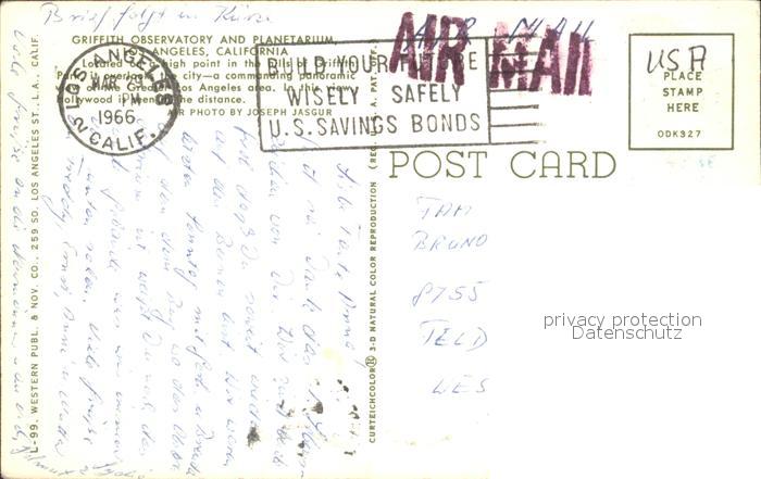 71983352 old postcard Los Angeles California Griffith Observatory and Planetarium Air view postalisch gelaufen Erhaltung siehe scans KatCode: 14140050000000