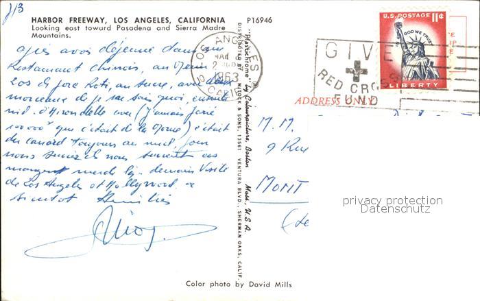 72408999 old postcard Los Angeles California Harbor Freeway Sierra Madre Mountains postalisch gelaufen Erhaltung siehe scans KatCode: 14140050000000