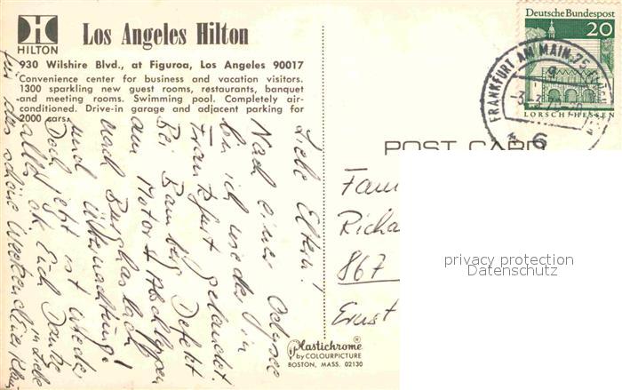 72823154 old postcard Los Angeles California Hilton Hotel postalisch gelaufen Erhaltung siehe scans [FriedD77] KatCode: 14140050000000