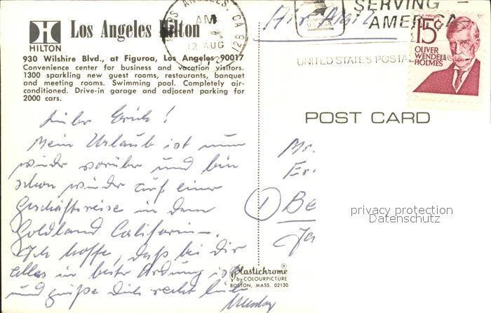 71953284 old postcard Los Angeles California Hotel Hilton postalisch gelaufen Erhaltung siehe scans KatCode: 14140050000000