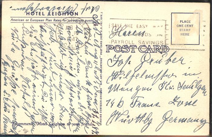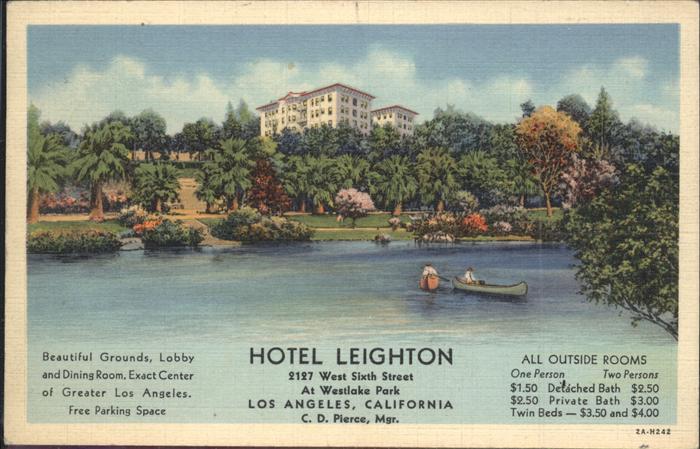 11326438 old postcard Los Angeles California Hotel Leighton See Ruderboot postalisch gelaufen gute Erhaltung KatCode: 14140050000000