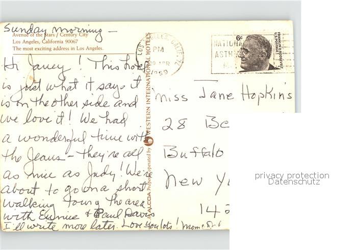 71920179 old postcard Los Angeles California Hotel Plaza Century City Avenue of the Stars postalisch gelaufen Erhaltung siehe scans KatCode: 14140050000000
