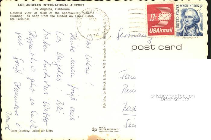 72566317 old postcard Los Angeles California International Airpor postalisch gelaufen Erhaltung siehe scans [LiesaD40] KatCode: 14140050000000
