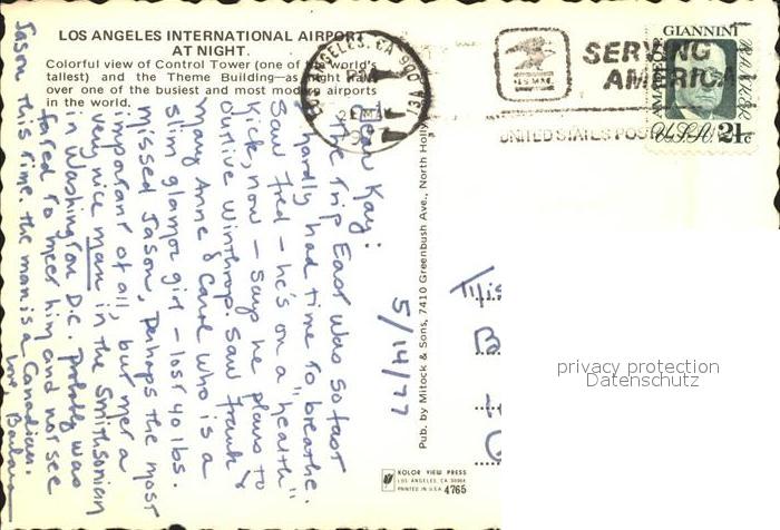 72332272 old postcard Los Angeles California International Airport Theme Building at night postalisch gelaufen Erhaltung siehe scans KatCode: 14140050000000