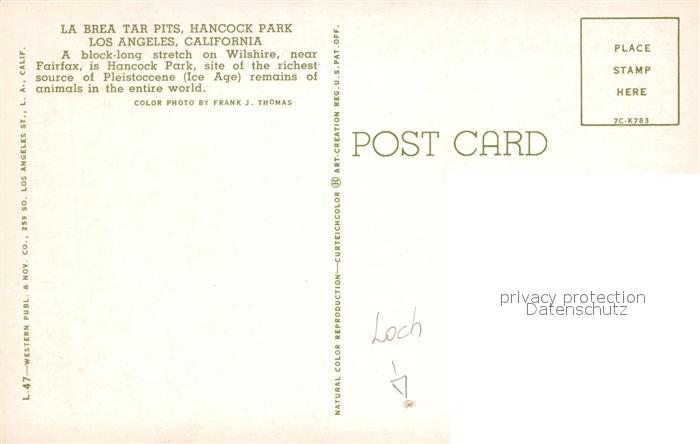 72996170 Los Angeles California La Brea Tar Pits Hancock Park postalisch nicht gelaufen Erhaltung siehe scans [WerneD78] KatCode: 14140050000000