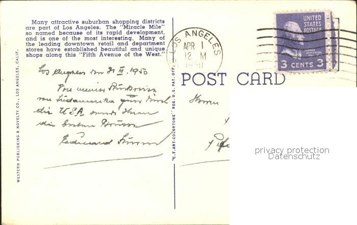 11807191 old postcard Los Angeles California Miracle Mile Wilshire Boulevard postalisch gelaufen Erhaltung siehe scans KatCode: 14140050000000