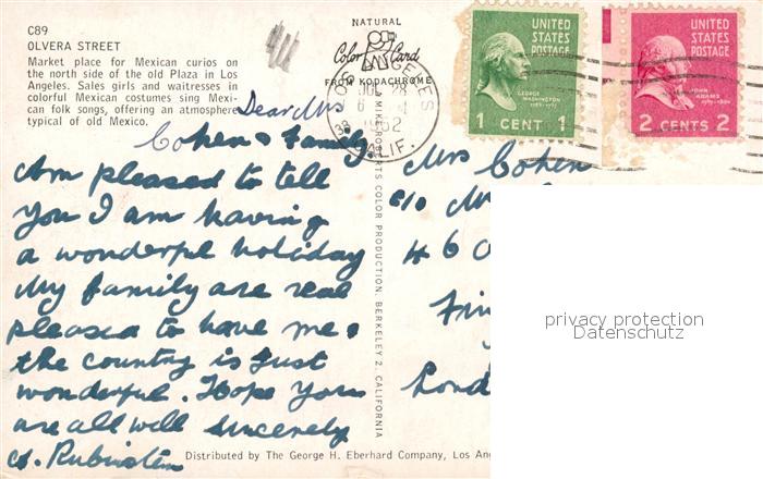 73295406 old postcard Los Angeles California Olvera Street postalisch gelaufen Erhaltung siehe scans [KathaD81] KatCode: 14140050000000