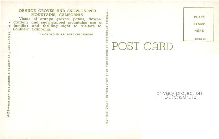 73012106 Los Angeles California Orange Groves Snow Capped Mountains postalisch nicht gelaufen Erhaltung siehe scans [KathaD81] KatCode: 14140050000000