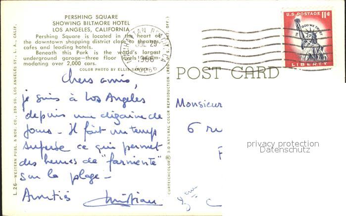 72230890 old postcard Los Angeles California Pershing Square Showing Biltmore Hotel postalisch gelaufen Erhaltung siehe scans KatCode: 14140050000000