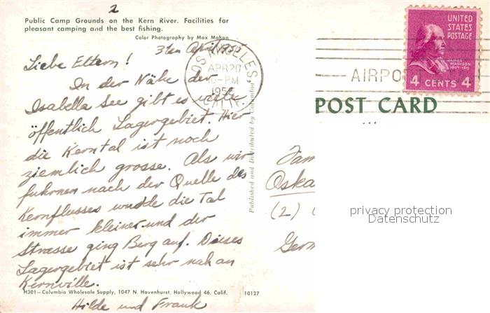 72843514 old postcard Los Angeles California Public Camp Grounds on the Kern River postalisch gelaufen Erhaltung siehe scans [LiesaD40] KatCode: 14140050000000