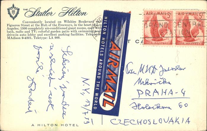 11111779 old postcard Los Angeles California Statler Hilton postalisch gelaufen KatCode: 14140050000000