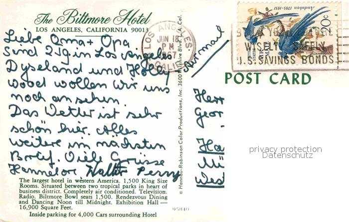 72614773 old postcard Los Angeles California The Biltmore Hotel postalisch gelaufen Erhaltung siehe scans [WerneD78] KatCode: 14140050000000