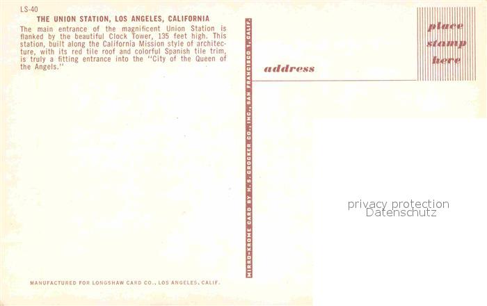 72812901 Los Angeles California The Union Station postalisch nicht gelaufen Erhaltung siehe scans [AndreD76] KatCode: 14140050000000