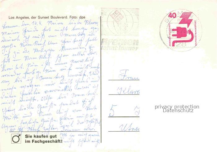 74076337 old postcard LOS ANGELES California USA Sunset Boulevard postalisch gelaufen Erhaltung siehe scans [FriedD77] KatCode: 14140050000000