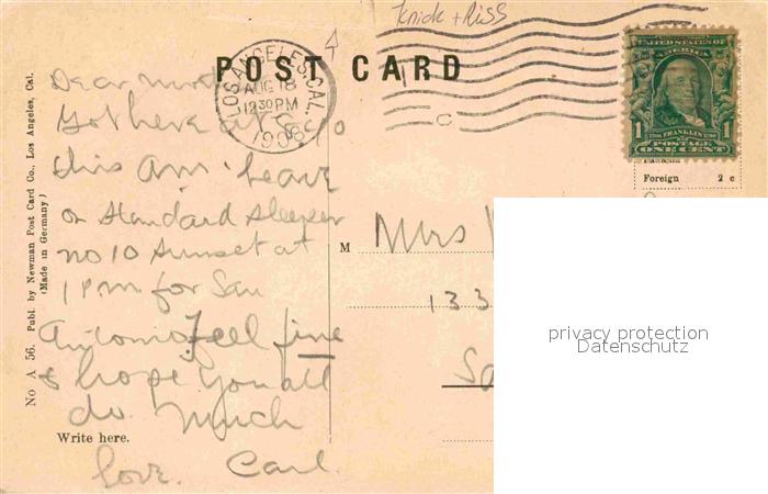 72766800 old postcard Los Angeles California West Lake Park postalisch gelaufen Erhaltung siehe scans [LiesaD40] KatCode: 14140050000000