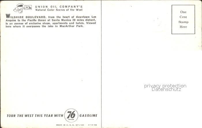 72271995 Los Angeles California Wilshire Boulevard with MacArthur Park postalisch nicht gelaufen Erhaltung siehe scans KatCode: 14140050000000