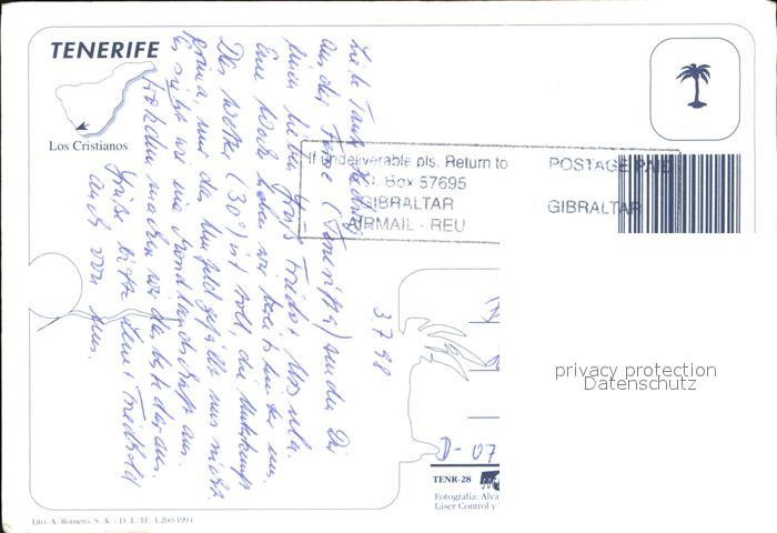 old postcard Los Cristianos Fliegeraufnahme postalisch gelaufen Erhaltung siehe scans