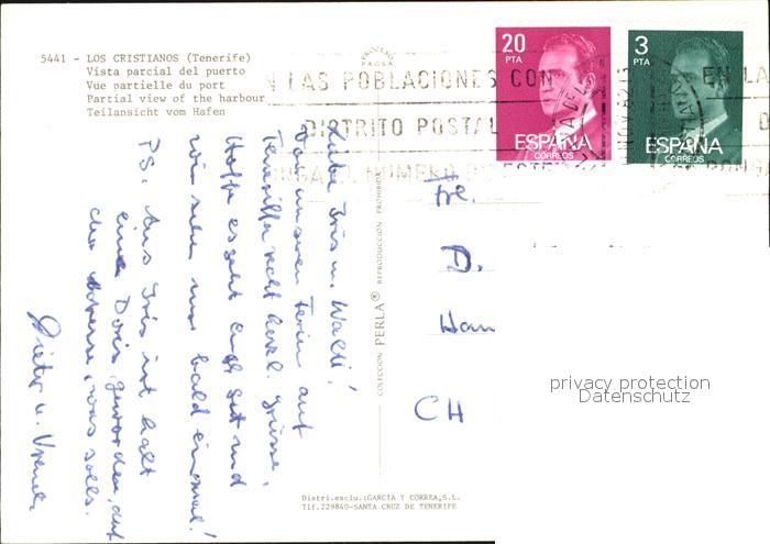 old postcard Los Cristianos Hafen Fischkutter postalisch gelaufen Erhaltung siehe scans [FriedD77]