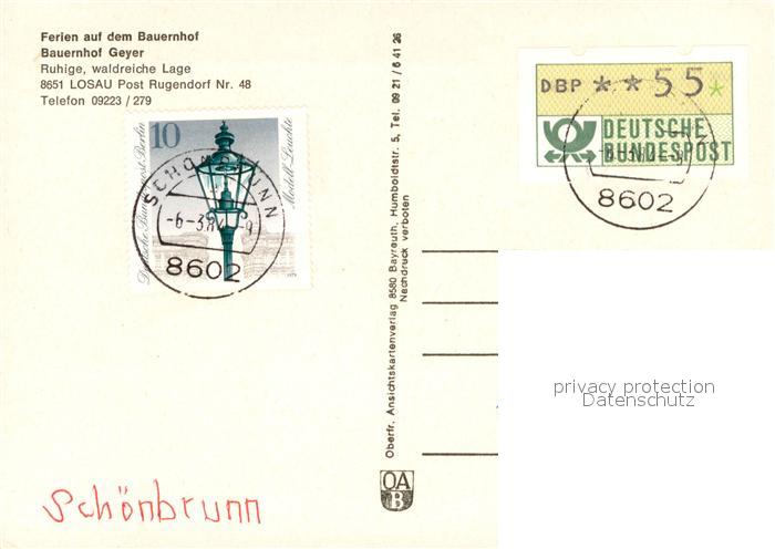 73659793 alte Postkarte Losau Rugendorf Ferien auf dem Bauernhof Panorama postalisch gelaufen Erhaltung siehe scans [FriedD77] KatCode: 11110009477151