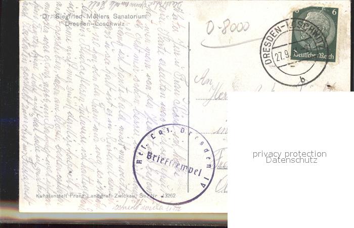 41974956 alte Postkarte Loschwitz Dr Moellers Sanatorium postalisch gelaufen Erhaltung siehe scans KatCode: 11110014262000