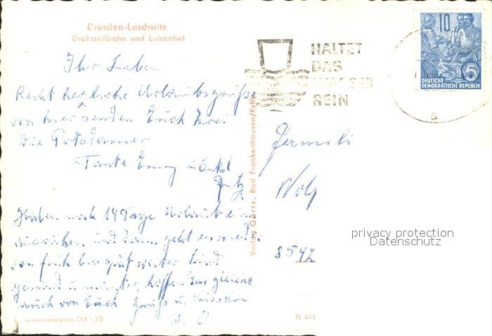72291613 alte Postkarte Loschwitz Drahtseilbahn Luisenhof postalisch gelaufen Erhaltung siehe scans KatCode: 11110014262000
