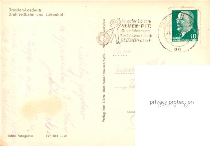 72952768 alte Postkarte Loschwitz Drahtseilbahn und Luisenhof Hotel Restaurant postalisch gelaufen Erhaltung siehe scans [FriedD77] KatCode: 11110014262000