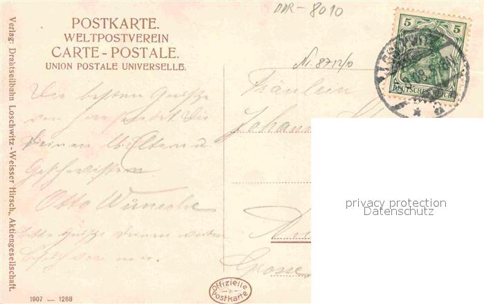 42712791 alte Postkarte Loschwitz Drahtseilbahn Weisser Hirsch postalisch gelaufen Erhaltung siehe scans [WerneD78] KatCode: 11110014262000
