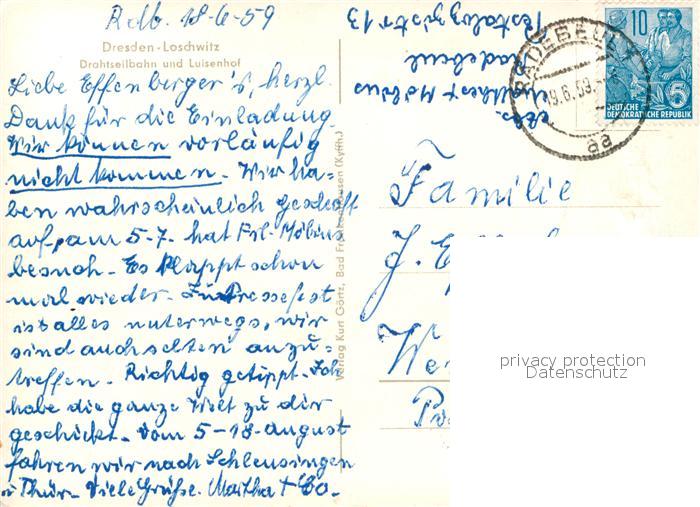 72984016 alte Postkarte Loschwitz Dresden Drahtseilbahn und Luisenhof postalisch gelaufen Erhaltung siehe scans [WerneD78] KatCode: 11110014262000