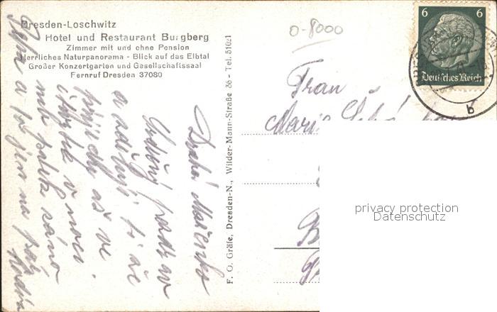 41988530 Loschwitz Hotel Restaurant Burgberg Panorama Elbtal postalisch gelaufen Alte Ansichtskarte Postkarte alte Postkarte Frie Katcode 11110014262000