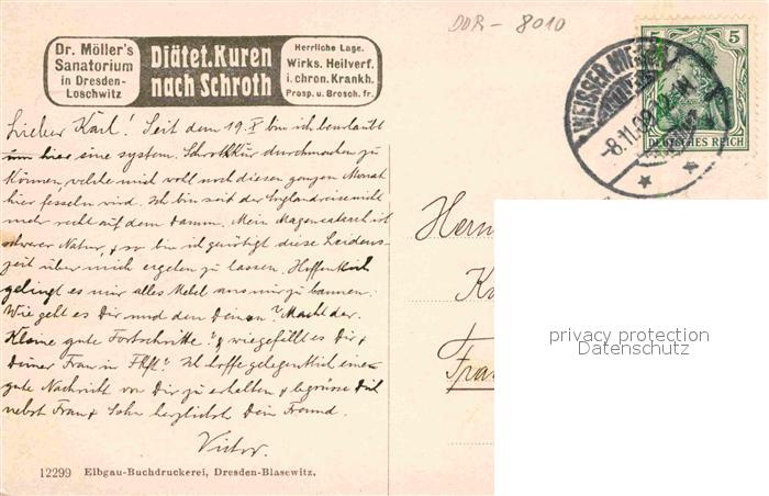 42711484 alte Postkarte Loschwitz Sanatorium Dr Moeller postalisch gelaufen Erhaltung siehe scans [WerneD78] KatCode: 11110014262000
